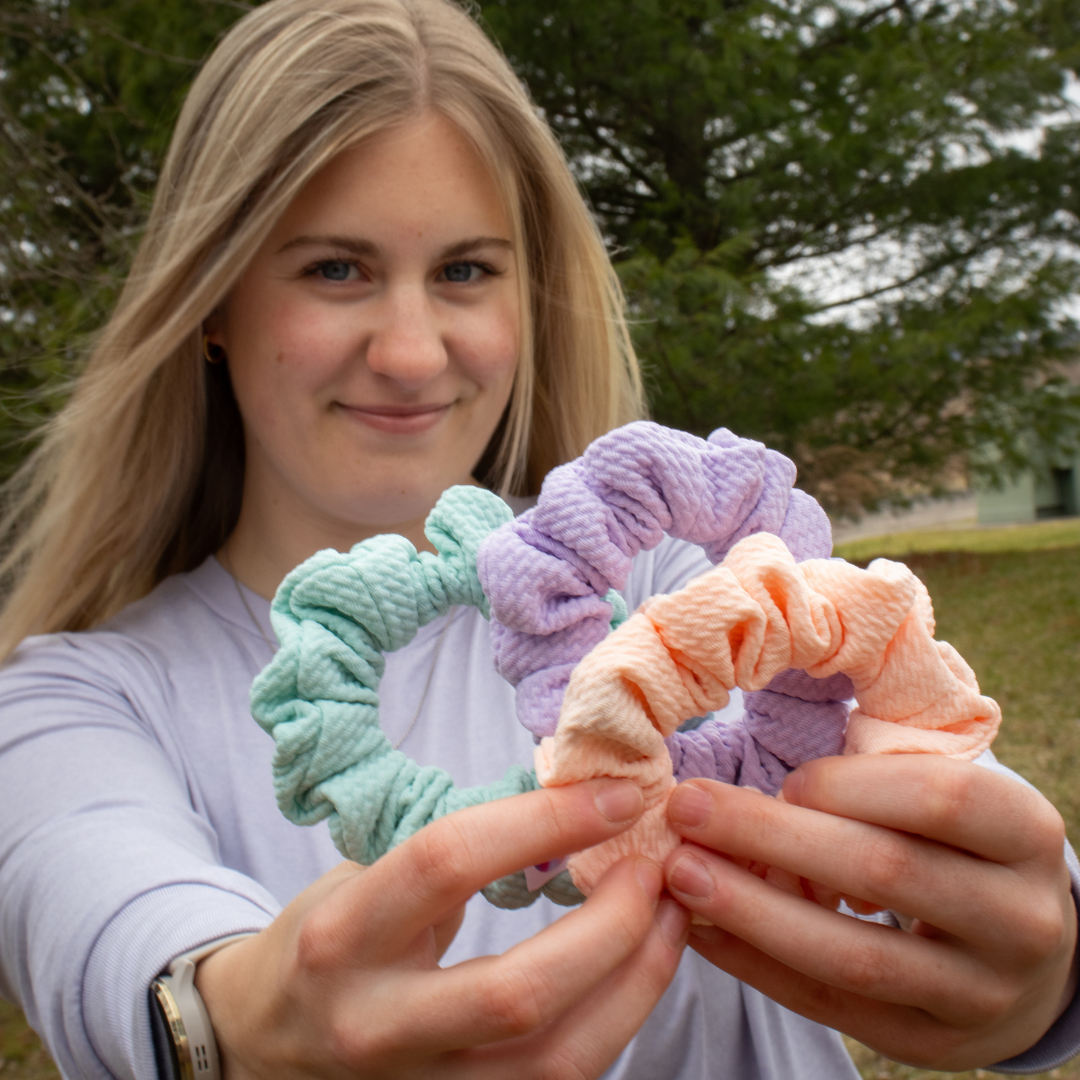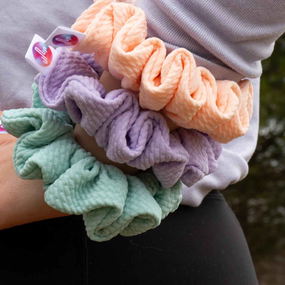 Get ready to crush your spring goals with this vibrant 3-pack! Whether you're hitting the trails, conquering your workout, or just living your best outdoor life, these scrunchies keep your hair locked in place while you move.
